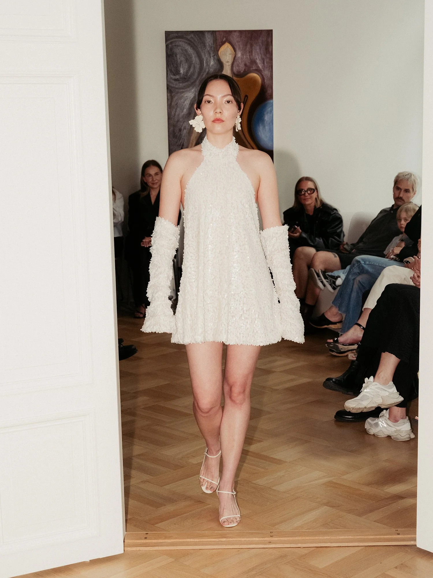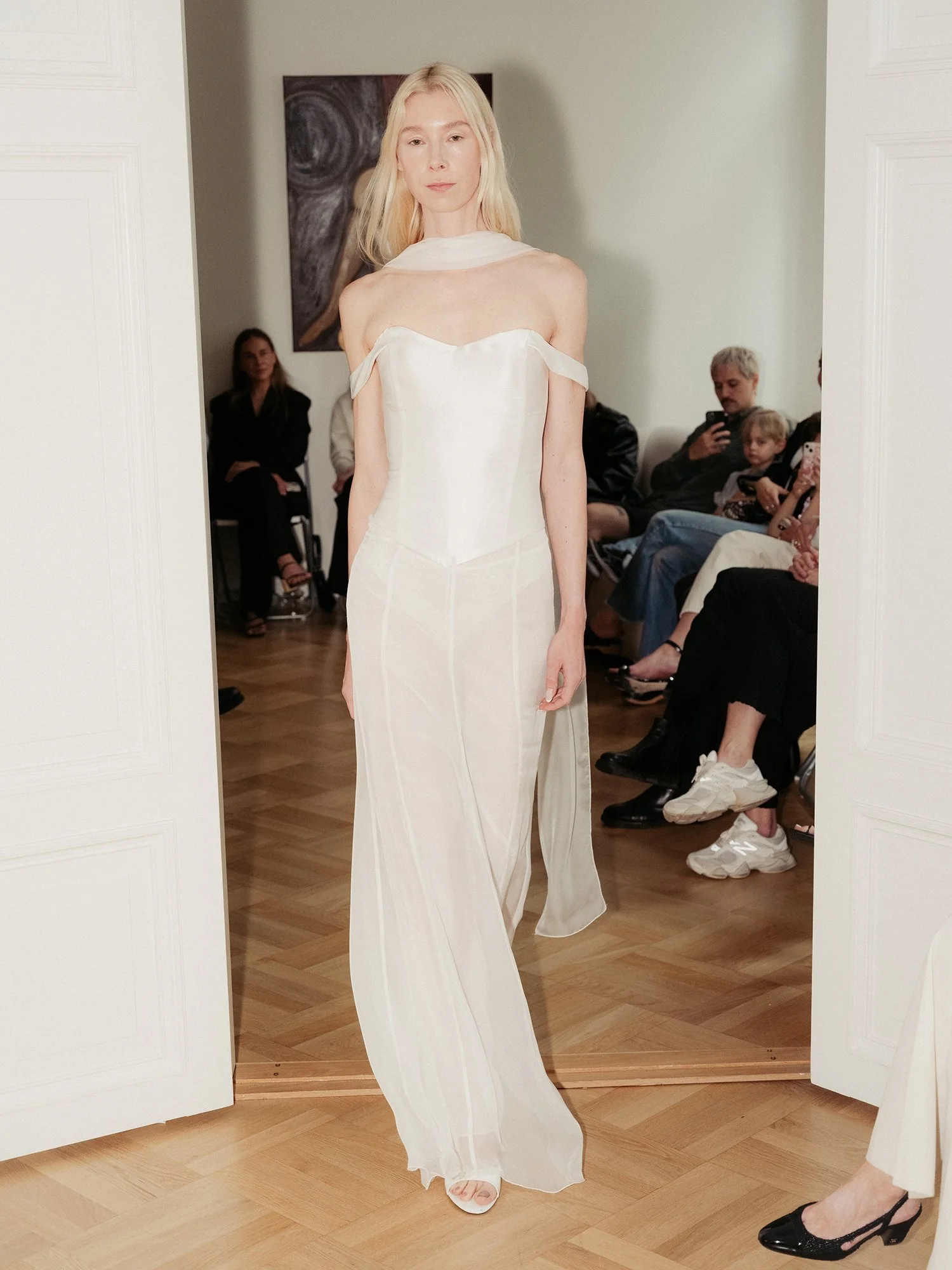 Light, airy fabrics in soft, creamy tones enhance the sense of weightless sophistication, while meticulous craftsmanship transforms every garment into a hand-made work of art.